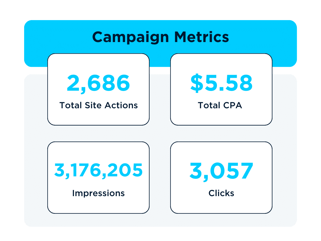 “We focused on maximizing campaign performance. From previous campaigns, we knew that removing the CTR threshold would help deliver sweepstakes submissions more efficiently. Retargeting audiences (1P data) consistently drives the best results.”