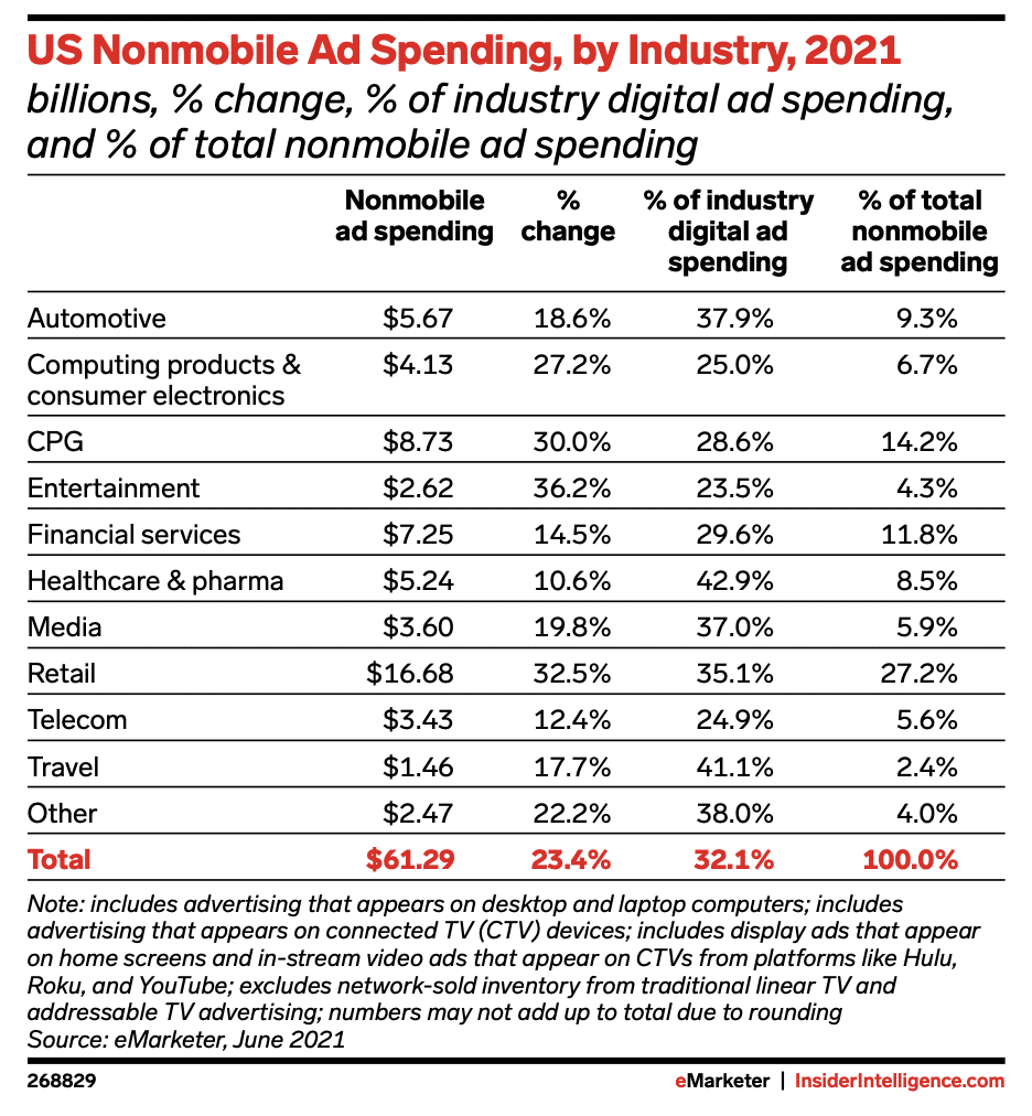 Digital ad spend by industry