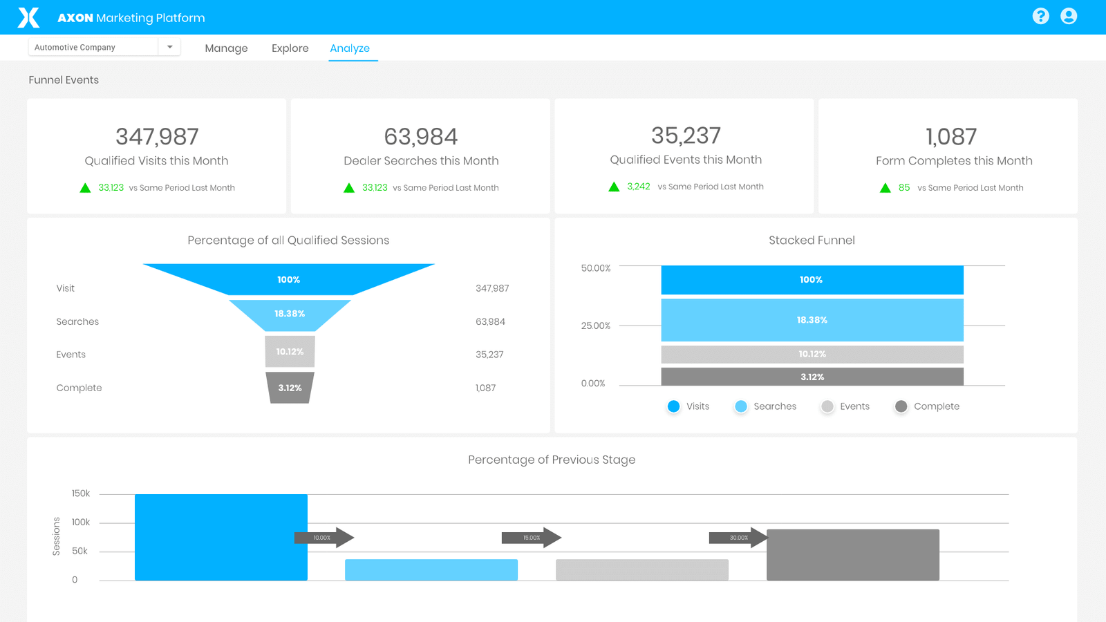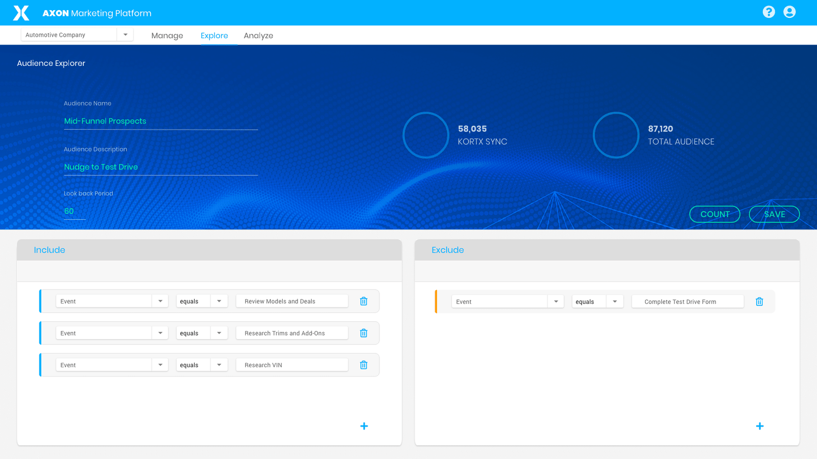 With Axon, we can curate specific, granular segments of these customers based on their actions and target according to each user’s location in the funnel. As they move from visiting the home page, to reviewing vehicle specifications based on VIN, to completing a form, to contacting a dealer, we can adjust the strength of our bidding or frequency and recency of media delivery accordingly.