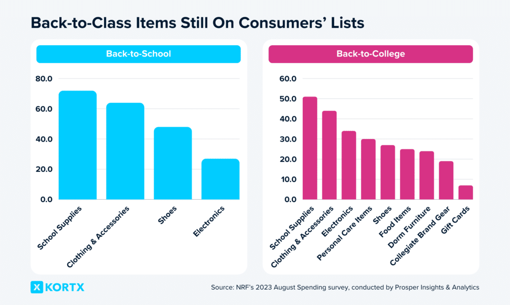Consumers plan to spend at record levels this back-to-class season. In 2023, American families spent $42.3 billion on K-12 back-to-school shopping and $36.4 billion on back-to-college shopping.