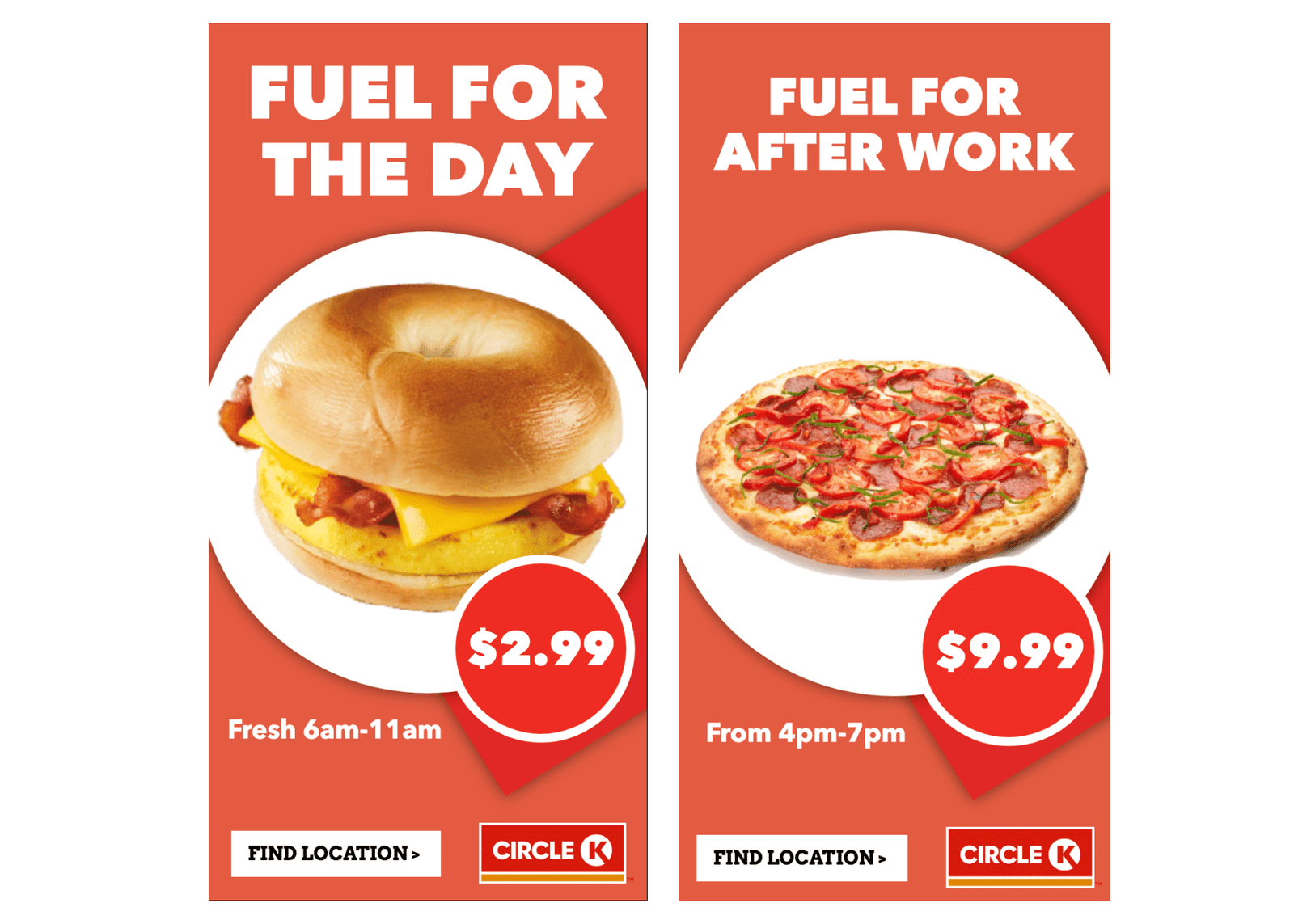 In this Circle K example, notice how each ad adapts to specific triggers: weather conditions, time of day, and even the day of the week combined with location. The ad recommends a refreshing drink for a hot day and suggests a warm beverage to cozy up with on a cold day.