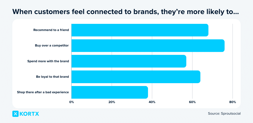 When consumers don’t feel connected to a brand, they’re 70% less likely to shop there over a competitor, and 61% will spend less in general with that business.
