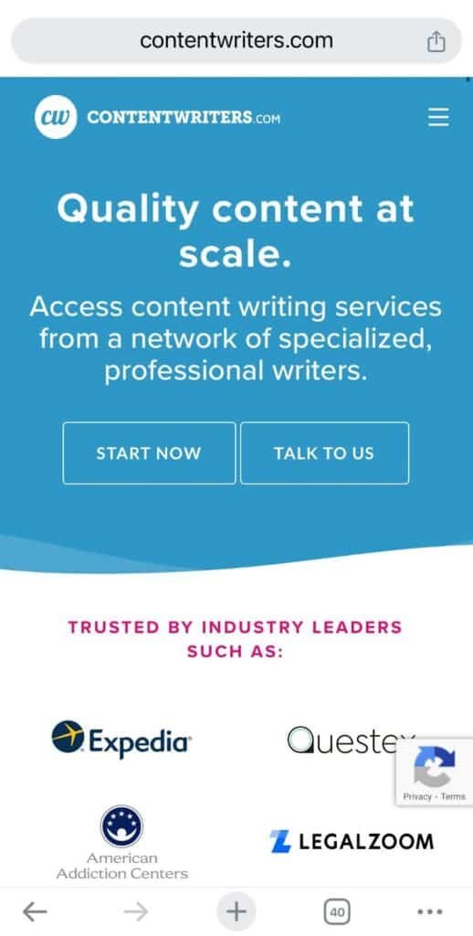 For example, clicking on contentwriters.com’s paid search ad on mobile brings us to this responsive page designed specifically for mobile: