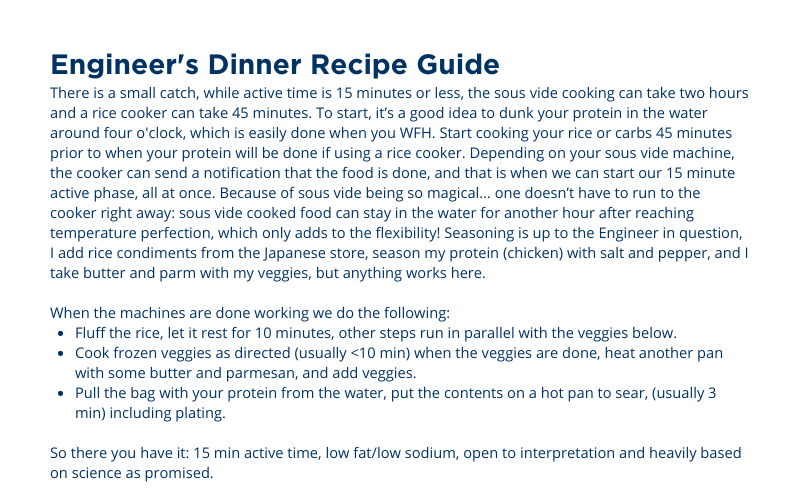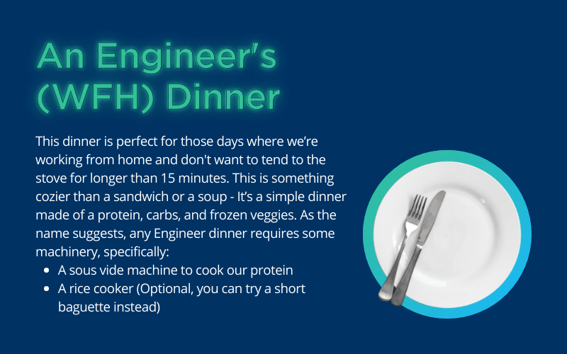An Engineering dinner for WFH days. This is perfect for those days where we’re working from home, don’t really want to tend to the stove for longer than 15 minutes, and want something cozier than a sandwich or a soup.